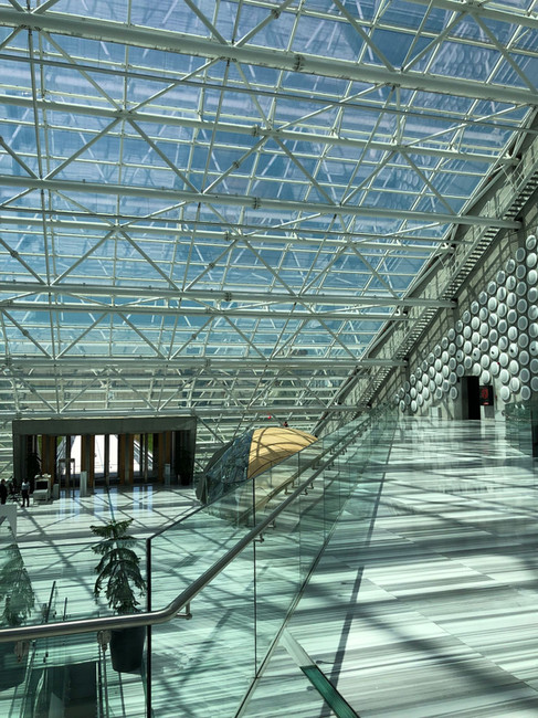 Сувенирный магазин, расположенный в главном фойе кампуса, имеет уникальный дизайн, напоминающий глобус - одна его часть сделана из стекла, а другая из дерева.